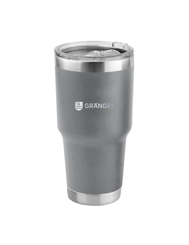 Tahoe 30 oz. tumbler. This high-quality vacuum-insulated tumbler keeps drinks hot and cold for hours! Includes a splash-proof and spill-resistant with slider locking lid. Double wall stainless steel. Durable powder coated finish. Engraved with the Gränges logo.